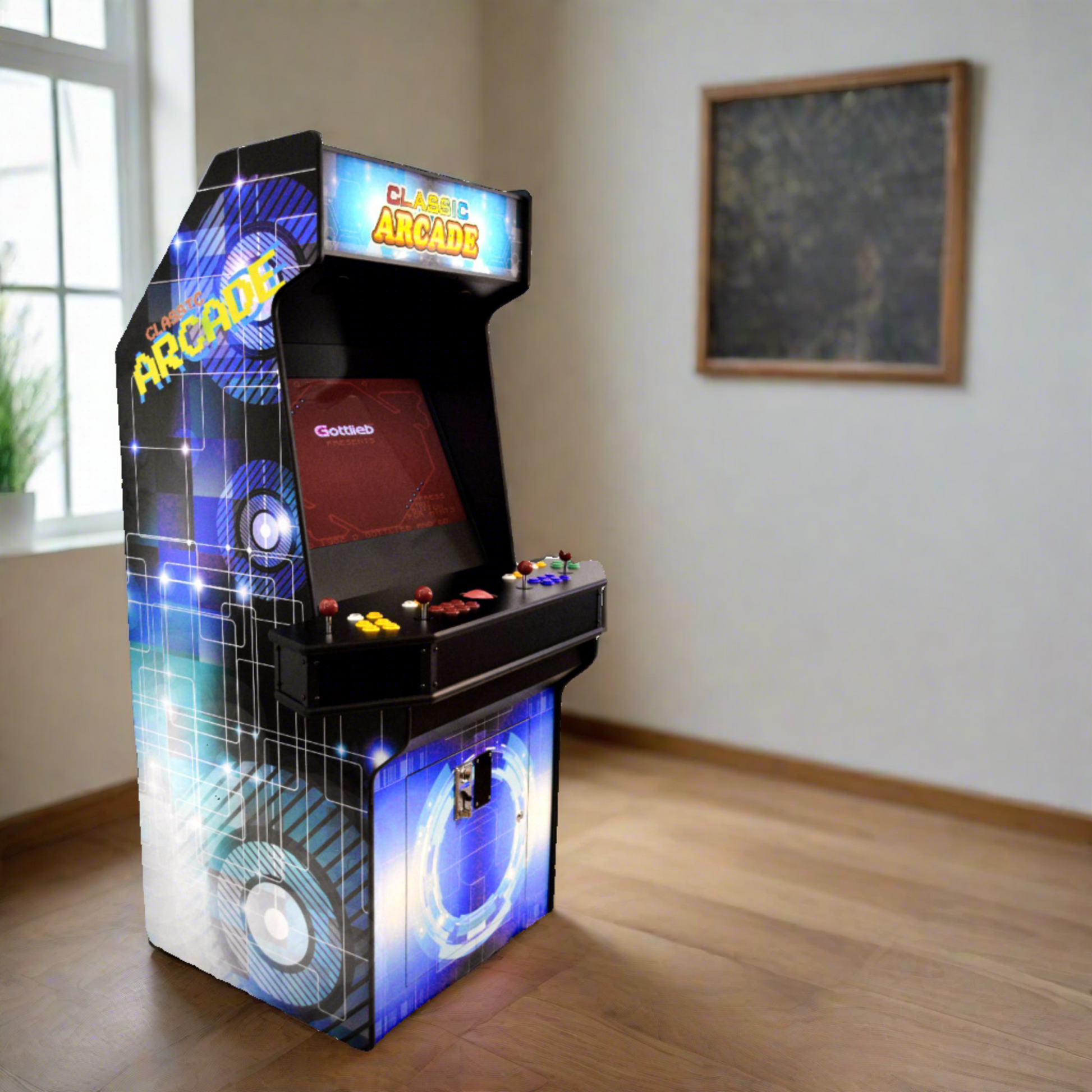 - Bring the noise! (Or don’t) Your arcade machine is custom built an amplified sound system including bass and treble controls. Crank up the bass or play on mute, it’s up to you!